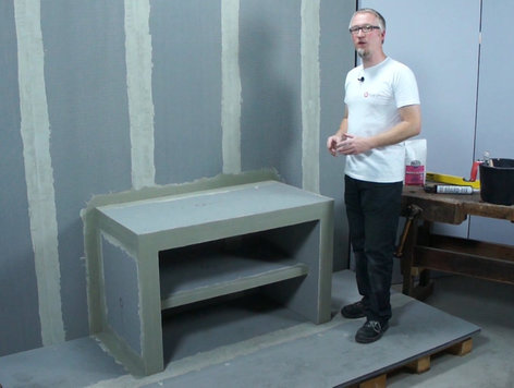 Nachdem Sie die Stöße und Kanten mit Qboard® Armierband abgeklebt haben, können Sie den Waschtisch verfliesen oder verspachteln und das Waschbecken einbauen.